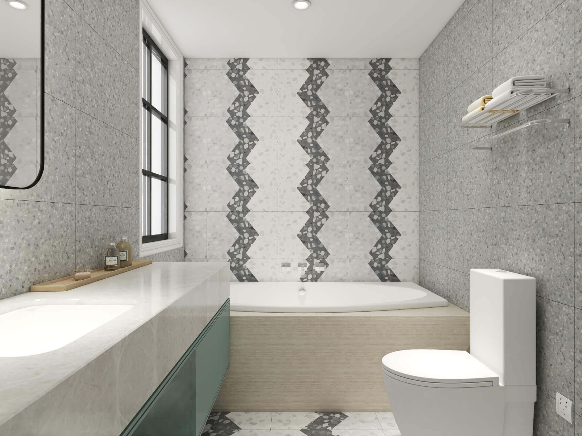 地面、背景墻自由鋪貼單磚、多磚、腰線、水刀拼花、波打線。